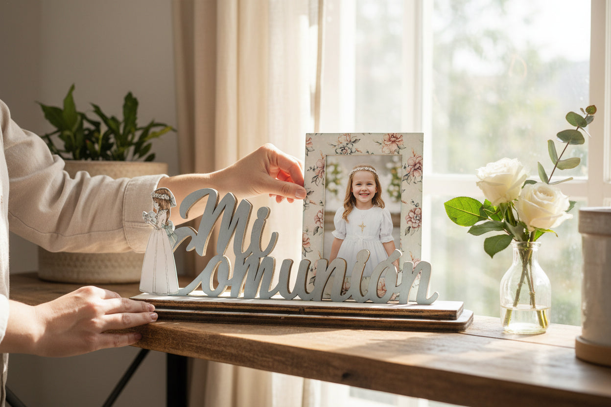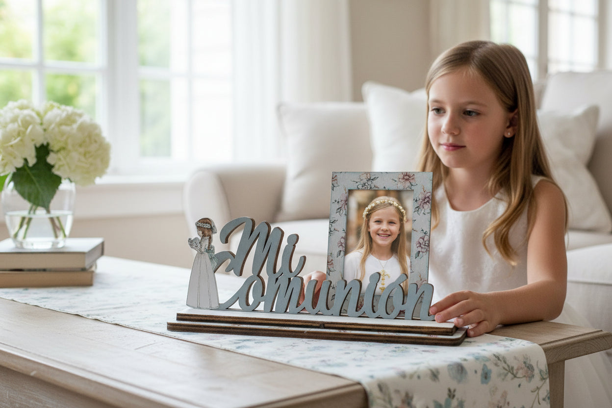 Personalización: El marco permiten añadir detalles personalizados como el nombre del niño/a haciendo que el recuerdo sea aún más especial y único.