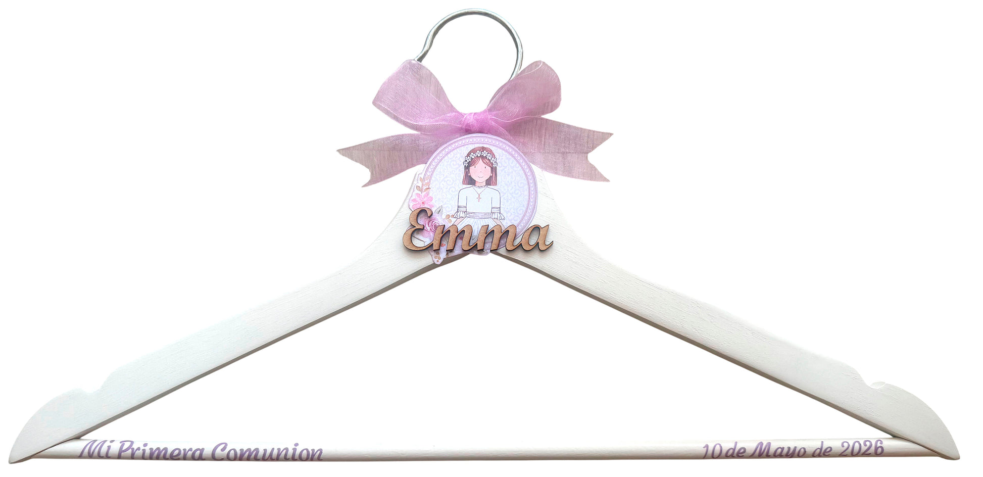 Toque Personal: Una percha personalizada puede agregar un toque personal único a un evento especial como la comunión. Puedes personalizarla con el nombre del niño o niña que hace la comunión y la fecha del evento.